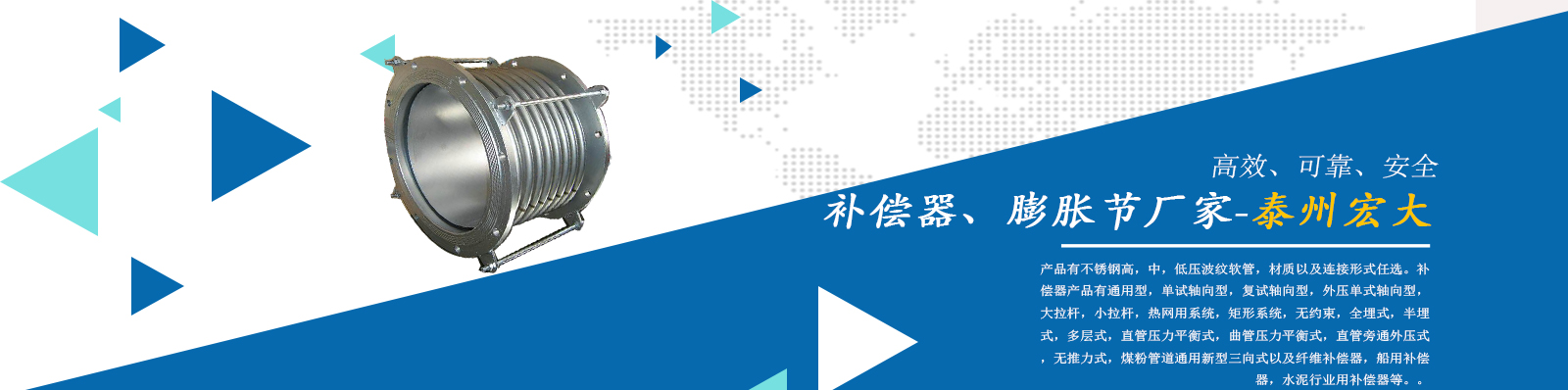 泰州市宏大機(jī)械設(shè)備有限公司是一個企業(yè)內(nèi)部管理嚴(yán)謹(jǐn),工作作風(fēng)穩(wěn)健,職工素質(zhì)水平較高,經(jīng)濟(jì)實力雄厚,產(chǎn)品質(zhì)量放心,外部形象良好的企業(yè)。本公司專業(yè)從事補(bǔ)償器廠家,膨脹節(jié)廠家,膨脹節(jié)補(bǔ)償器,其中有不銹鋼高,中,低壓波紋軟管,材質(zhì)以及連接形式任選。補(bǔ)償器產(chǎn)品有通用型,單試軸向型,復(fù)試軸向型,外壓單式軸向型,大拉桿,小拉桿,熱網(wǎng)用系統(tǒng),矩形系統(tǒng),無約束,全埋式,半埋式,多層式,直管壓力平衡式,曲管壓力平衡…...